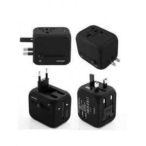 Adaptor pentru priza universal cu 2x porturi USB, UK/EU/US/AU, negru