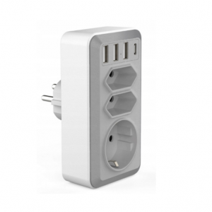 Priză de încredere, datorită căreia putem avea 6 dispozitive conectate în același timp. Trei dispozitive sunt conectate cu prize de curent standard, cele trei suplimentare cu porturi USB, care ajustează automat intensitatea curentului la dispozitivul conectat până la 3,4A.