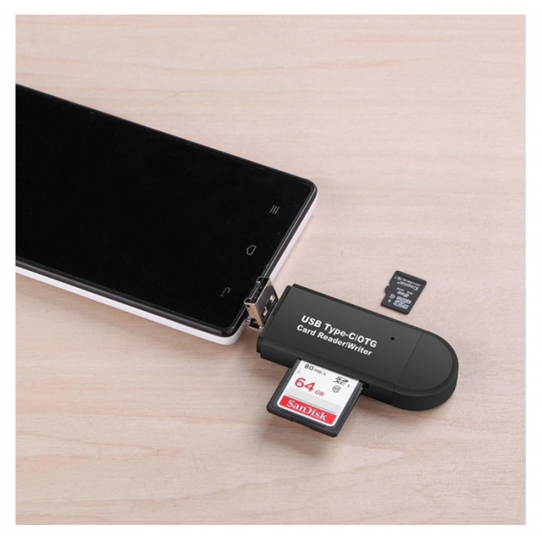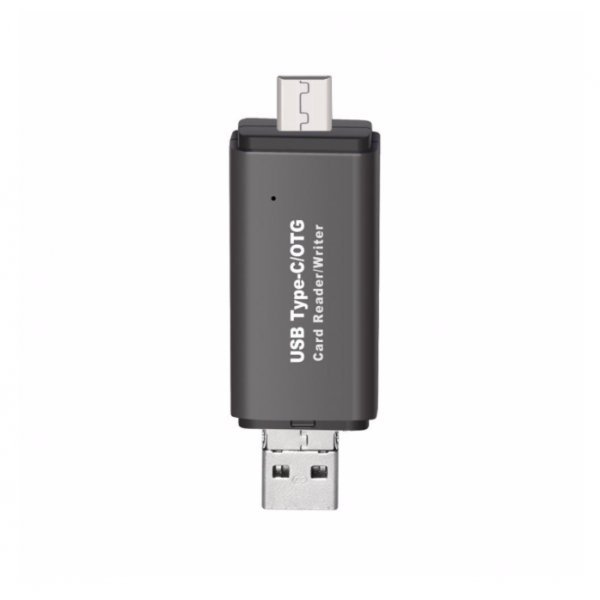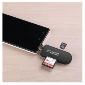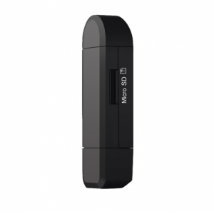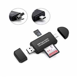 Card Reader OTG 3in1, Cititor de carduri Compact PVC – Universal TF / SD Memory, Micro USB Combo, Type-C, USB, Gonga, culoaremodel Negru