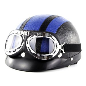 Casca moto model vintage cu ochelari, culoaremodel Albastru