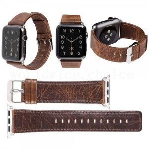 Curea compatibila Apple Watch, 42/44mm, din piele naturala, vintage, cafea