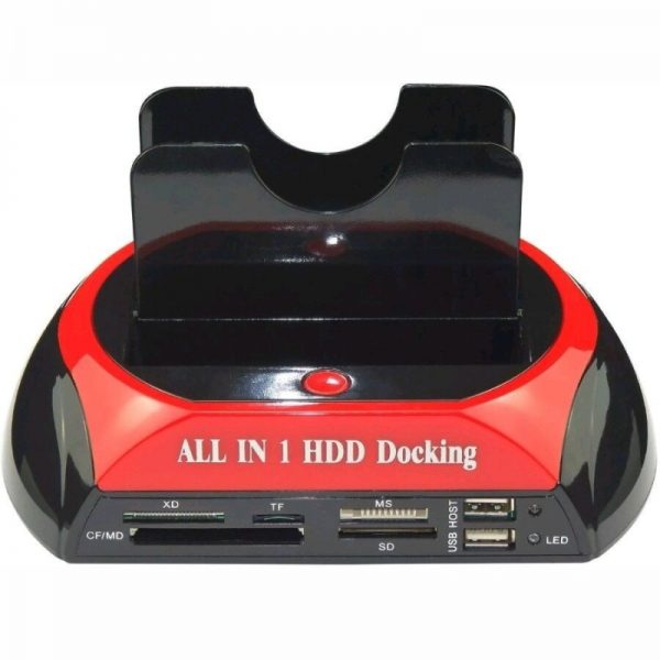 Este prevazut cu doua porturi USB 2.0 si cititor de carduri, pentru a putea realiza activitati multiple in acelasi timp. Dispozitivul este perfect pentru a transfera datele de pe un hard disk IDE si SATA de 2,5″ / 3,5″ pe calculator cu o viteza de pana la 480 Mbps.