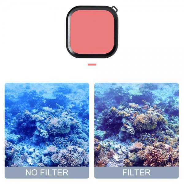 Lentila de culoare rosie ajuta la restaurarea culorii albastre, si este perfecta pentru scufundari in ape adanci, unde lumina nu patrunde atat de bine.