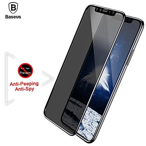 Folie de protectie iPhone X, sticla securizata 3D anti spy, Baseus, culoaremodel Negru
