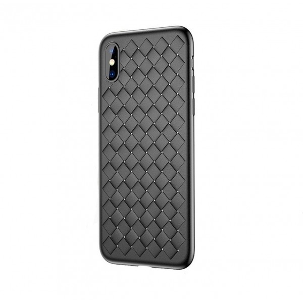 Husa telefon pentru Iphone 8 Plus, impletita, imitatie piele, negru