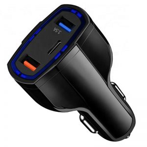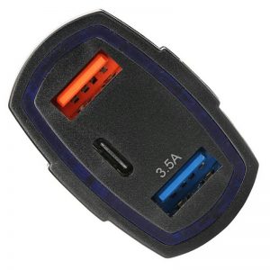 Incarcator Auto 2x USB si 1x USB-C, Gonga, culoaremodel Negru