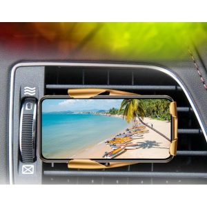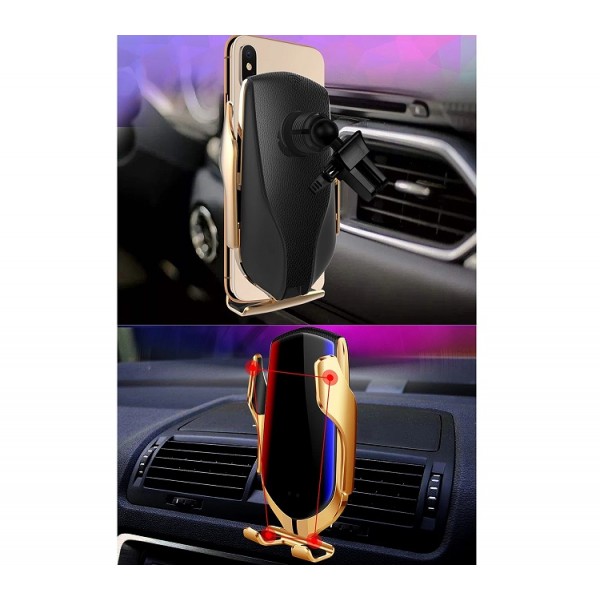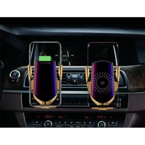 Incarcator auto wireless Qi, senzor infrarosu, Gonga, culoare Auriu
