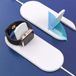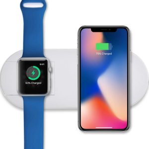 Incarcatorul wireless 2 in 1 este un dispozitiv conceput special pentru a incarca simultan Iphone-ul si ceasul Iwatch, prin intermediul tehnologiei Qi fara fir.
