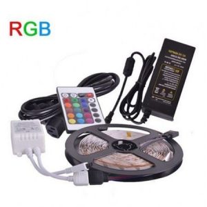 Kit banda led flexibila, 60 leduri, 5 metri, cu telecomanda si alimentare, Gonga®