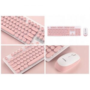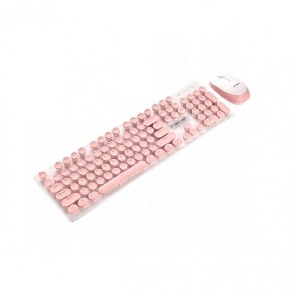 Kit mouse si tastatura wireless, N520, Gonga®, culoaremodel Roz