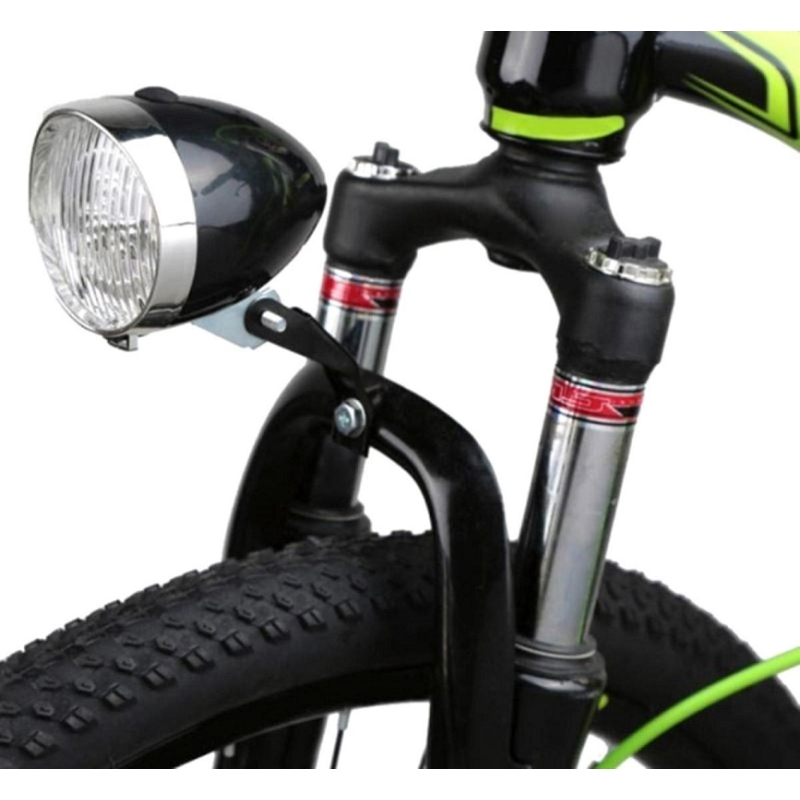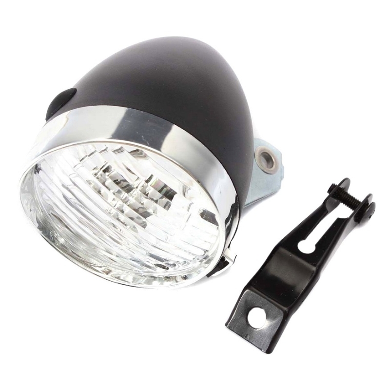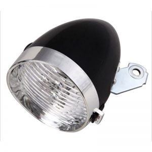 Lampă retro pentru fața bicicletei. Panoul de culoare crom din partea frontală a carcasei îmbunătățește experiența estetică.