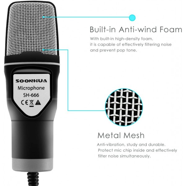 Acest microfon condensator este proiectat special pentru a fi sensibil la frecventele vocii umane si asigura un sunet de inalta calitate, perfect pentru inregistrarea podcast-ului dvs. sau a streaming-ului cu jocurilor video. Dimensiunile sale mici il fac extrem de portabil, permitandu-va sa participati la conferinte sau sa discutati cu prietenii pe drum. Interfata de conectare a microfonului va permite sa va conectati pur si simplu la computer sau laptop prin USB si sa fiti gata !