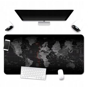Mouse pad cu model harta lumii, Gonga®, culoaremodel Negru, marime 90 x 40 cm