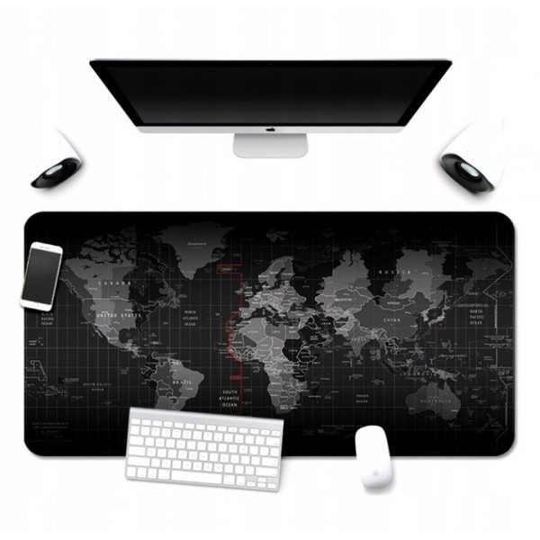 Mouse pad cu model harta lumii, Gonga®, culoaremodel Negru, marime 80 x 30 cm