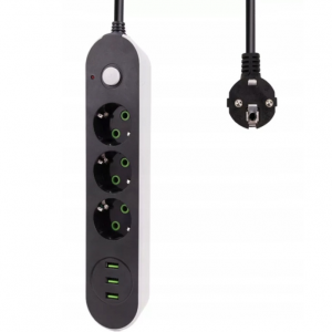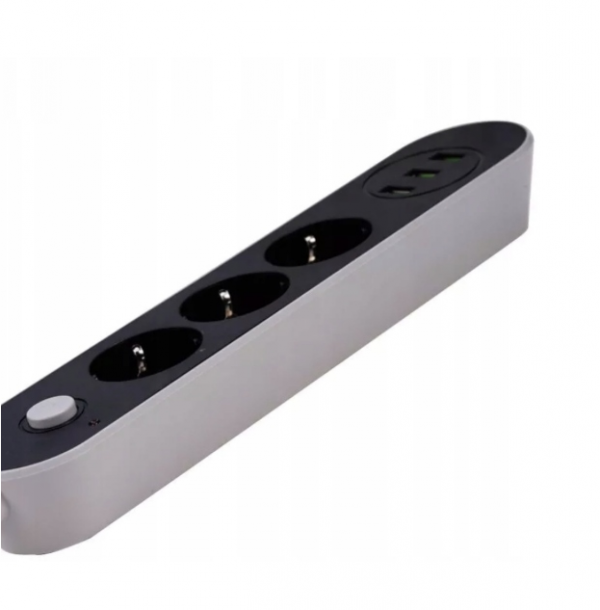 Priză de încredere, datorită căreia putem avea 6 dispozitive conectate în același timp. Trei dispozitive sunt conectate cu prize de curent standard, cele trei suplimentare cu porturi USB, care ajustează automat intensitatea curentului la dispozitivul conectat până la 3,4A.