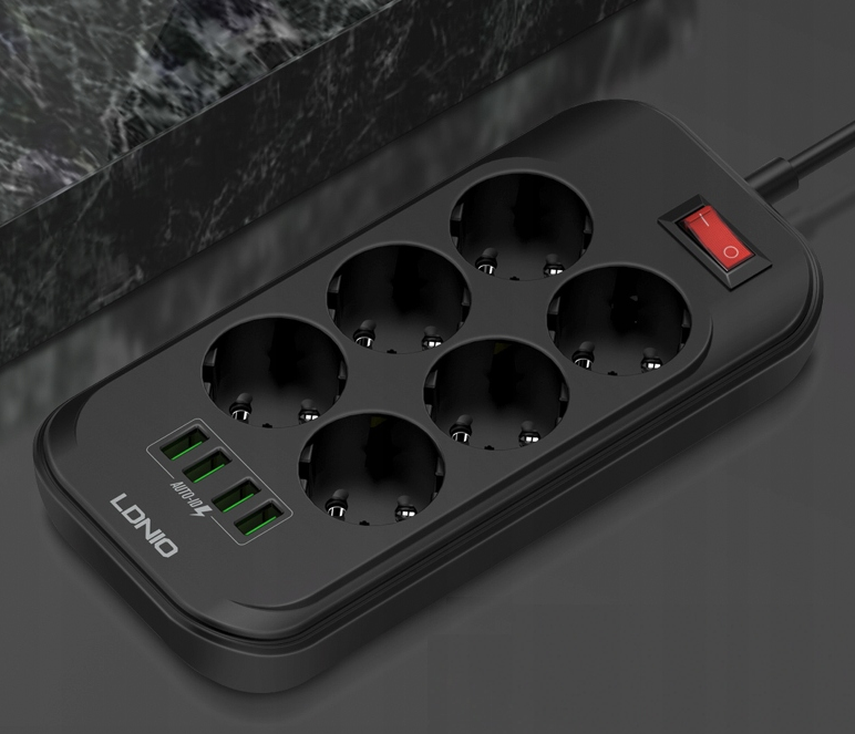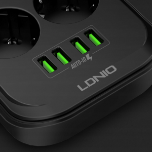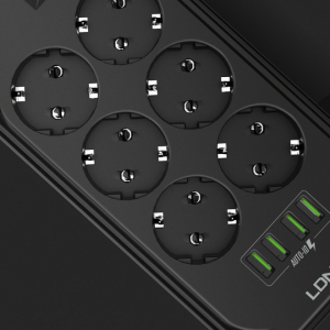 Șase dispozitive pot fi conectate cu prize de curent standard, alte patru cu porturi USB, care ajustează automat intensitatea curentului la dispozitivul conectat până la 3,4A.