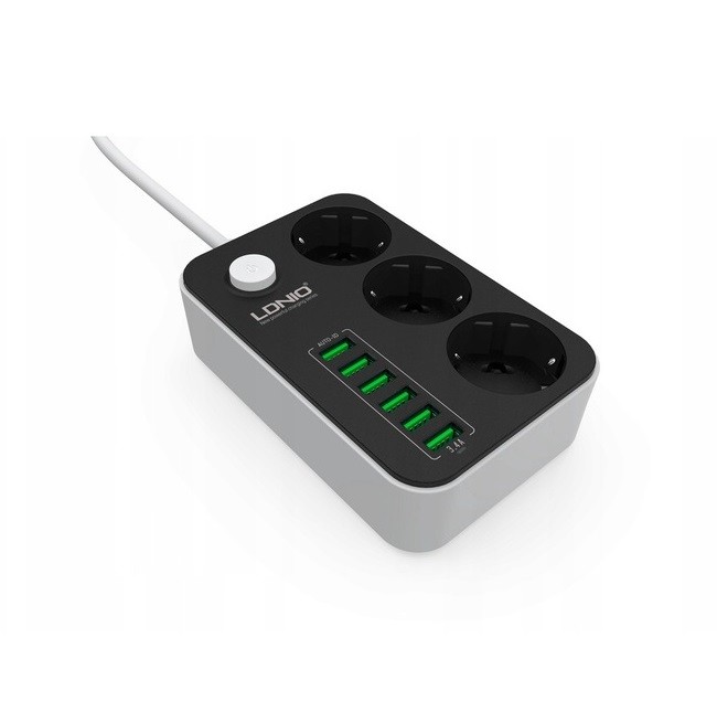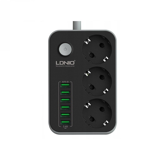 Prelungitor LDNIO cu 3 prize 220V si 6 porturi USB, perfect pentru casa sau biroul dumneavoastra.