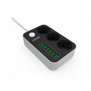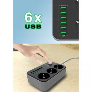 Prelungitorul este prevazut cu 3 prize de 220V si 6 porturi USB pentru a putea incarca mai multe device-uri in acelasi timp.