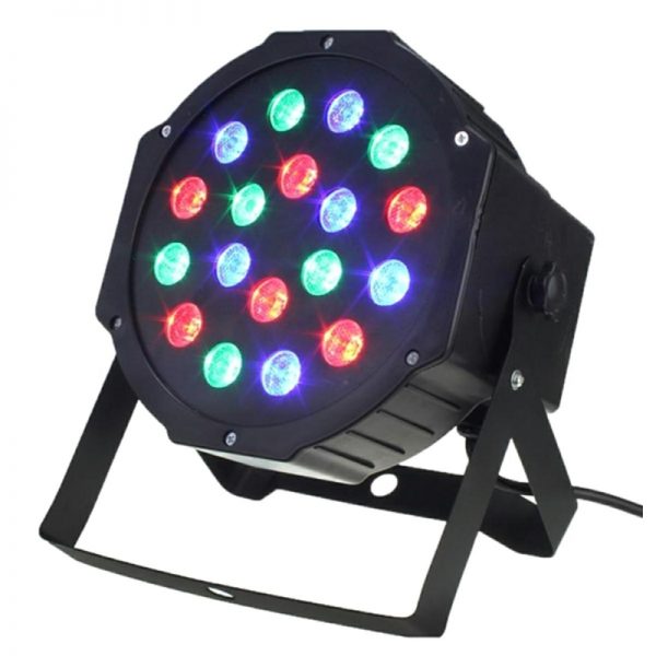 Lumini disco – colorofon 18 LED-uri, LED-uri RGB 3 culori cu cadru. Sporul este echipat cu optsprezece LED-uri RGB cu o putere de 1W fiecare. Toate oferă lumină puternică, cu rază lungă de acțiune! Datorită gamei largi de culori (RGB), va fi perfect ca iluminat decorativ pentru DJ, trupe, petreceri, nunți și chiar cluburi!
