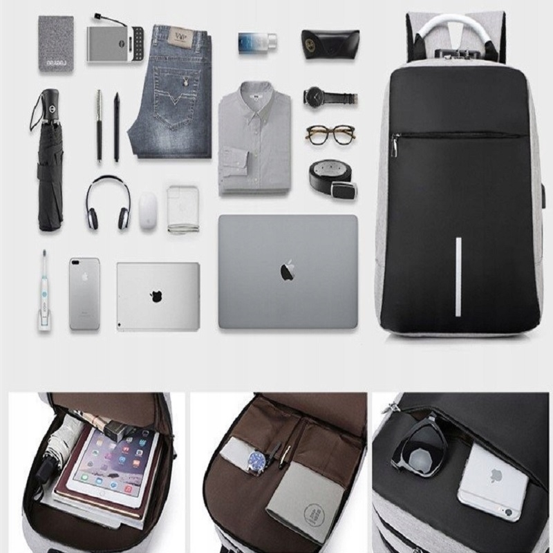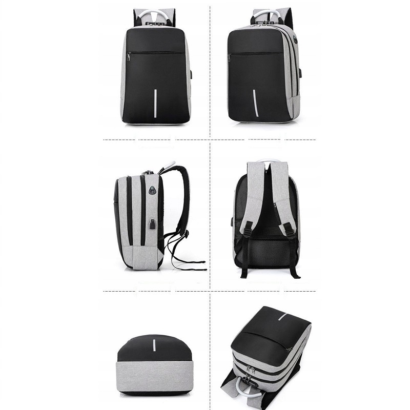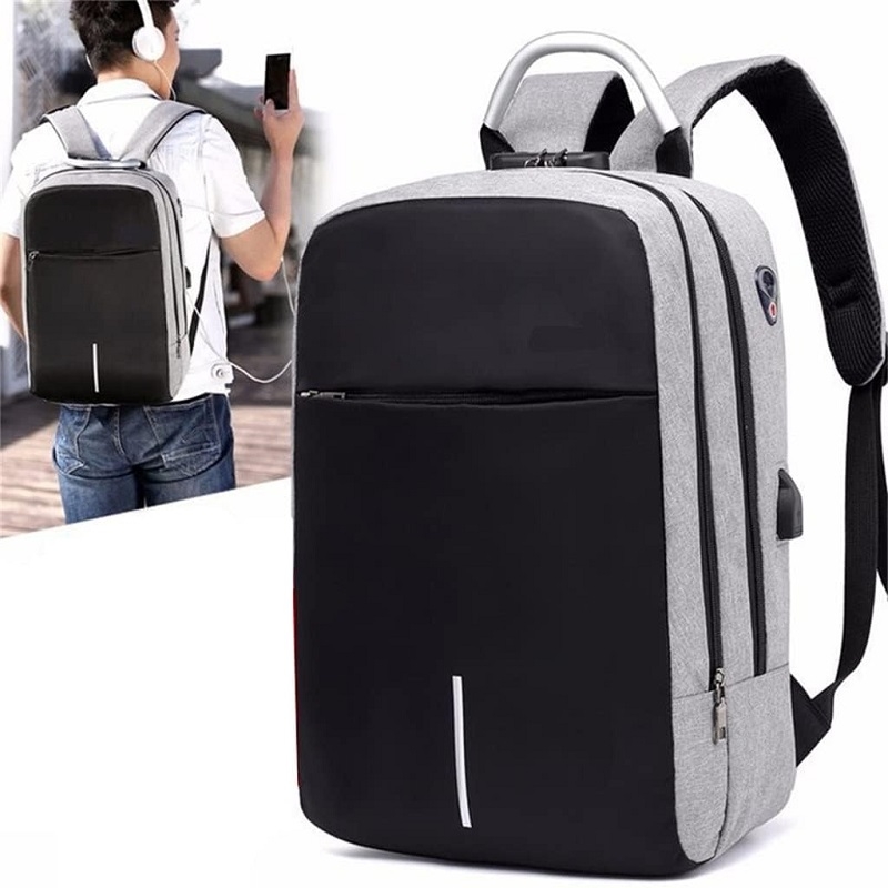 Rucsac cu cifru si port USB, impermeabil, Gonga®, culoaremodel Gri