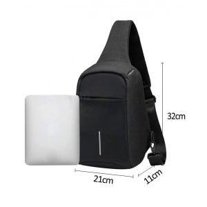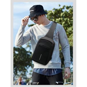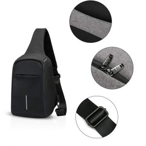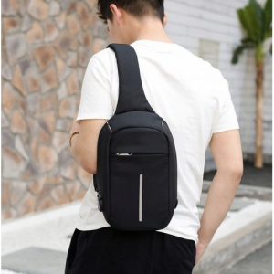 Rucsac cu un umar antifurt, cu USB, impermeabil, negru, Gonga