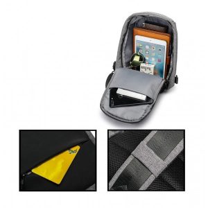 Sistemul antifurt cu care este dotat rucsacul, este unul conceput special pentru a va proteja indiferent de cat de aglomerate sunt spatiile in care va deplasati. Are un fermoar ascuns in partea din spate a rucsacului, imposibil de gasit de catre raufacatori.