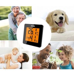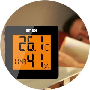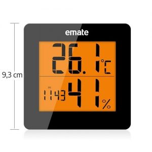 Afisajul LCD indica temperatura, gradul de umiditate si ora.