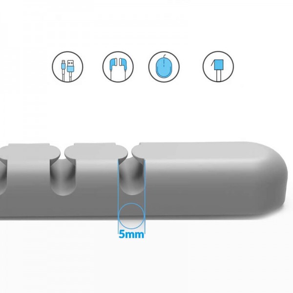 Suport cabluri autoadeziv pentru birou – 7 sloturi, culoare Gri