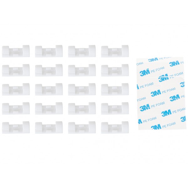 Suport cabluri autoadeziv pentru birou din plastic – 20 sloturi, Gonga®, culoaremodel Alb