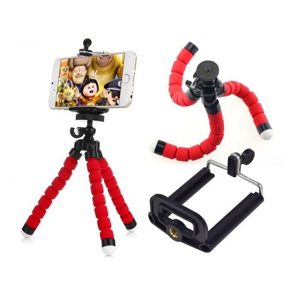 Trepied pentru camera octopus, cu clema, Gonga, culoare Rosu